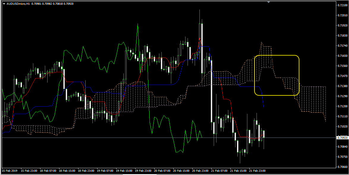 อย่างไรก็ตาม ในความคิดเห็นของผู้เขียน อดีตไม่สะท้อนการเคลื่อนไหวของราคาในอนาคต การใช้กรอบราคาเดิมเพื่อเป็นการระบุแนวรับแนวต้านนั้นเป็นเพียงทางเลือกหนึ่งเพื่อหาจุด Stoploss เท่านั้น แต่ไม่ได้บอกว่าราคาที่เข้าเทรดจะดีจริงหรือไม่ สิ่งที่ผู้เขียนสังเหตุเห็นได้จาก Ichimoku และมีความน่าสนใจอยู่คือ ลักษณะของการบอกช่วงกราฟที่ผันผวน จึงขอนำเสนอวิธีการใช้งานดังต่อไปนี้