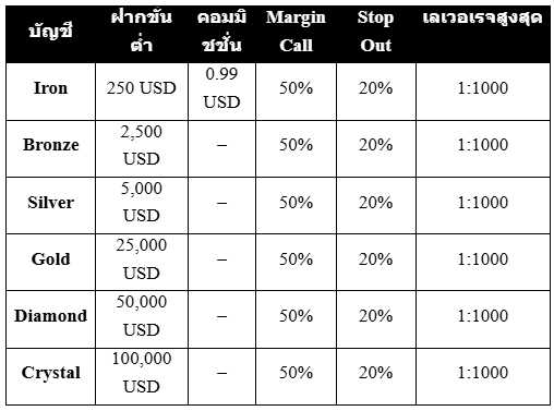 | บัญชีที่ ค่าบริการถูกสุด | Live Account |
