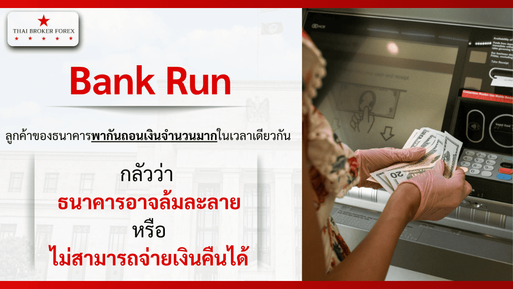 - Bank Run คือ สถานการณ์ที่ลูกค้าของธนาคารพากันถอนเงินจำนวนมากในเวลาเดียวกัน เนื่องจากความกลัวว่า ธนาคารอาจ ล้มละลาย หรือ ไม่สามารถจ่ายเงินคืนได้