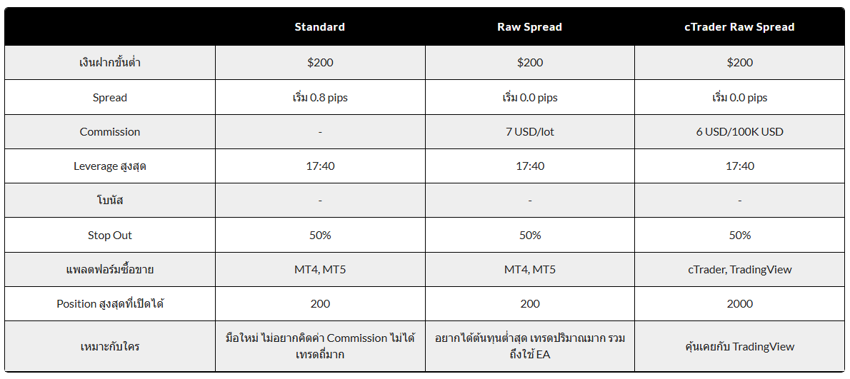 - ไม่มีบัญชี Cent และ ตัวเลือกบัญชีก็มีไม่เยอะ มีแค่ 2-3 บัญชี ไม่แตกต่างกันเท่าไหร่