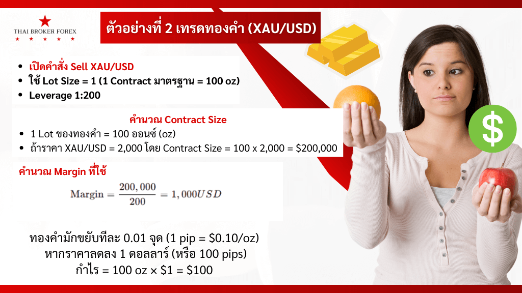 ถ้าราคา XAU/USD = 2,000 โดย Contract Size = 100 x 2,000 = $200,000