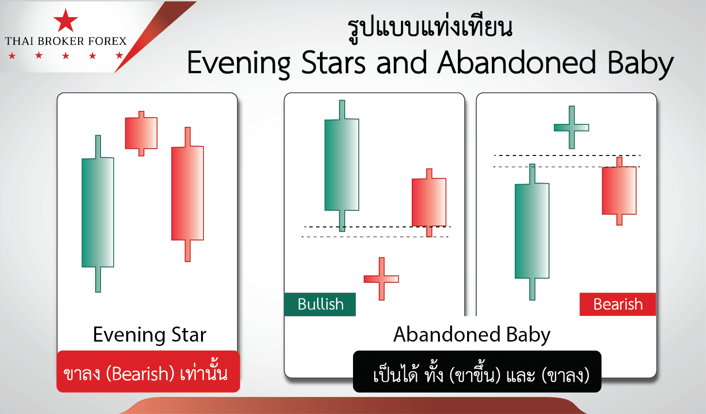 ลักษณะของรูปแบบ Evening Stars and Abandoned Babies Candlestick Patterns