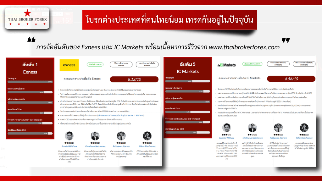 ตัวอย่างการรีวิวแบบจัดเต็มบนเว็บไซต์ Thaibrokerforex.com ของ โบรกเกอร์ Exness และ IC Market ที่ถูกจัดอยู่ในอันดับที่ 1 และ 5 ของการรีวิว