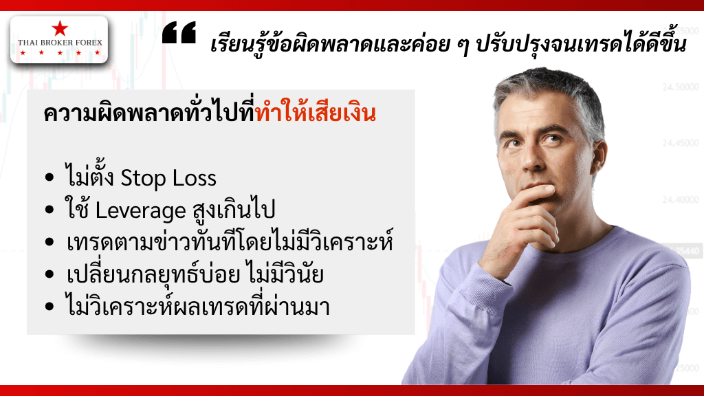 ภาพอธิบายถึงข้อผิดพลาดที่ทำให้นักเทรดเสียเงิน หรือ ขาดทุนบ่อย ๆ แน่นอนว่าใครเป็นแบบนี้ก็ค่อย ๆ ปรับปรุงและจะเป็นนักเทรดที่ดีได้เช่นกัน