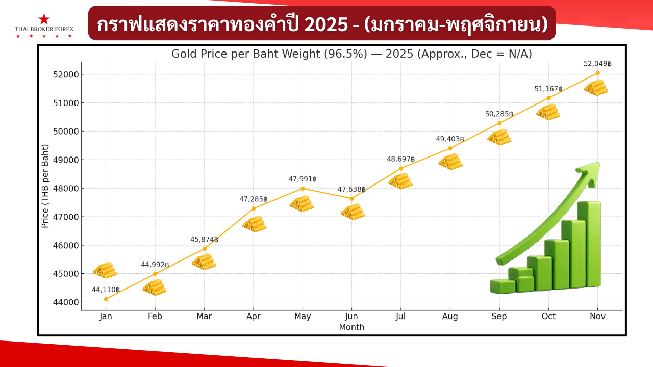 ภาพแสดงราคาทองคำปี 2025 (มกราคม-พฤศจิกายน) หน่วยสกุลเงินเป็น ไทยบาท / ทองคำ 1 บาท