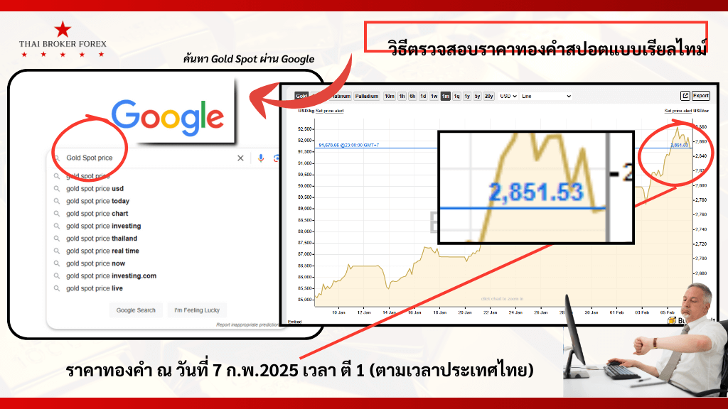 - นักลงทุนสามารถตรวจสอบราคาทองคำสปอตแบบเรียลไทม์ได้จากหลายแหล่ง เช่น