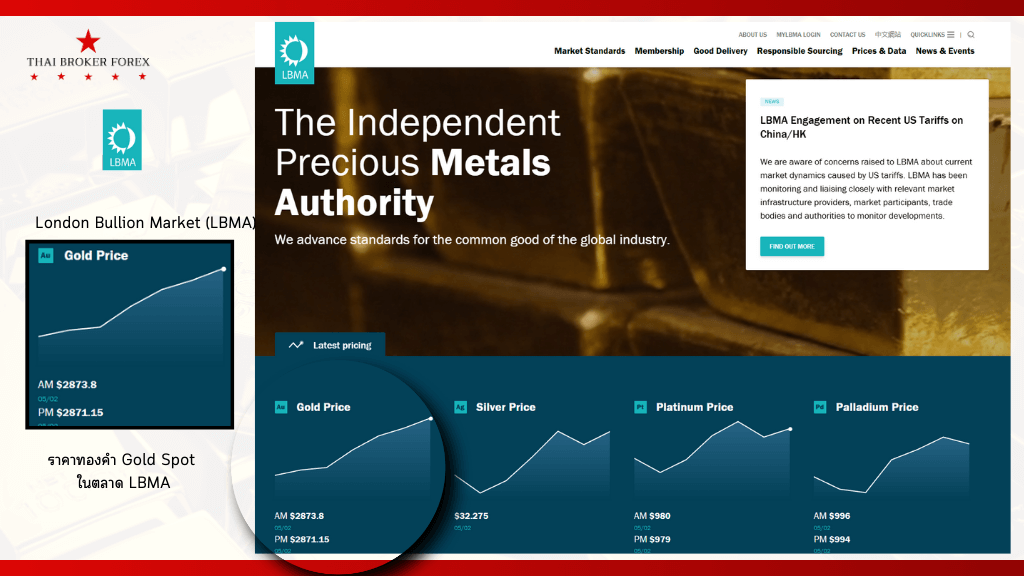 - London Bullion Market (LBMA) และ COMEX ที่ถือเป็นศูนย์กลางของการซื้อขายทองคำสปอต