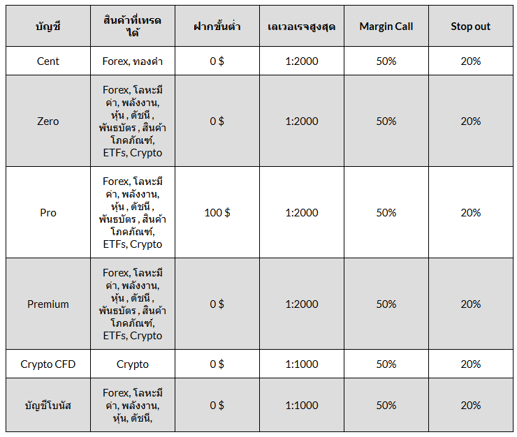 - มีบัญชีหลากหลายแบบทั้ง Cent, Zero, Pro, Premium ปรับใช้งานได้กับกลยุทธ์หลายแบบ มีทุนน้อยก็เทรดได้ (ล่าสุดมีบัญชี Crypto CDF สำหรับเทรดคริปโตโดยเฉพาะแล้ว)