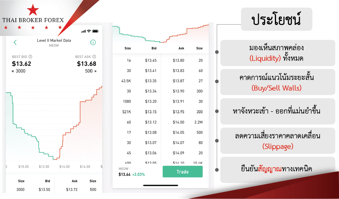 การเข้าถึงข้อมูล Market Depth หรือ Level II Quote ให้ข้อได้เปรียบให้กับนักลงทุน ดังนี้