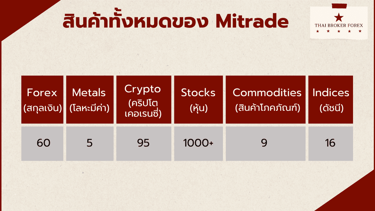 - สินค้าของ Mitrade เรียกได้ว่ามีเยอะพอสมควรเลย