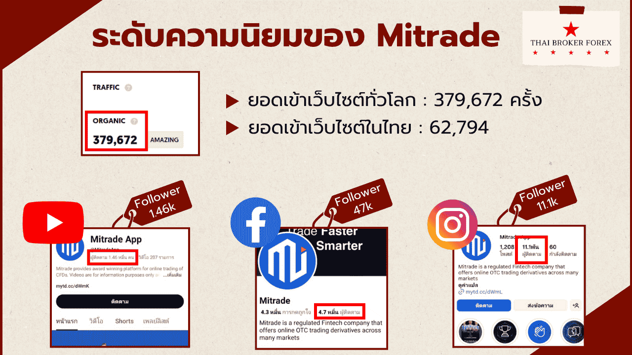- Facebook: Mitrade Official ผู้ติดตาม 47k