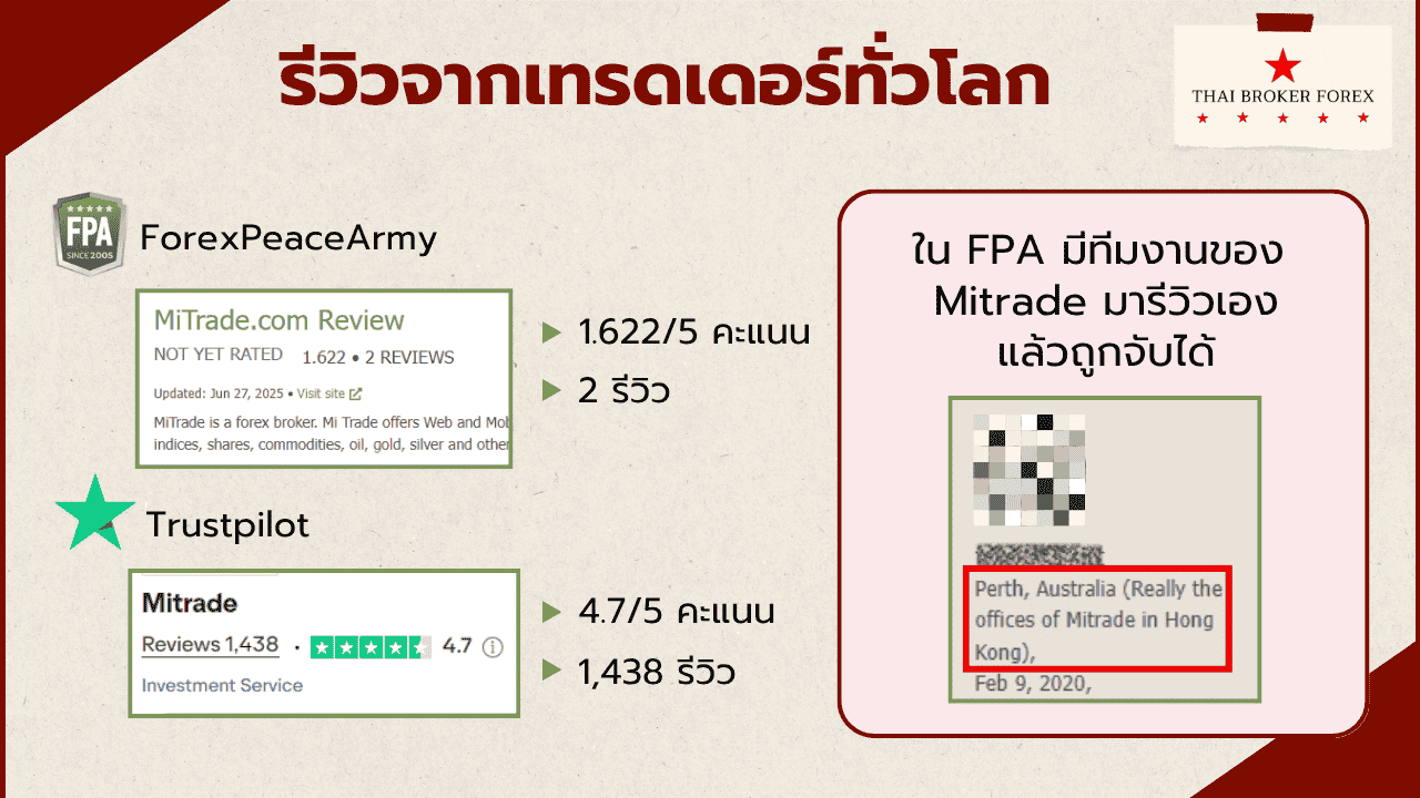 - คะแนนและรีวิวใน ForexPeaceArmy น้อยมาก หนึ่งในนั้นเป็นทีมงานของ Mitrade มารีวิวเองแล้วถูกจับได้ด้วย