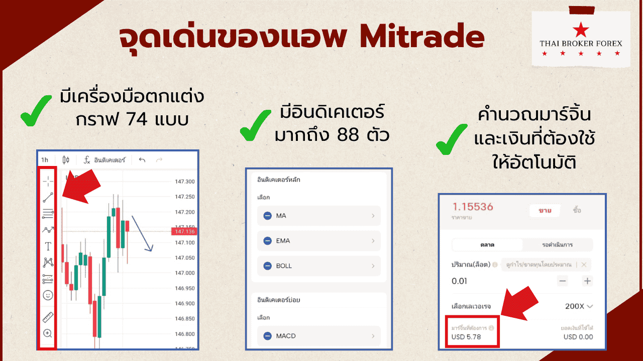 - ถ้าอยากได้อะไรเด่นๆ เช่น ต้นทุนถูกมาก เรทฝากถอนดี หรือมีเครื่องมือเยอะๆ Mitrade ยังต้องพัฒนาเพิ่มอีก