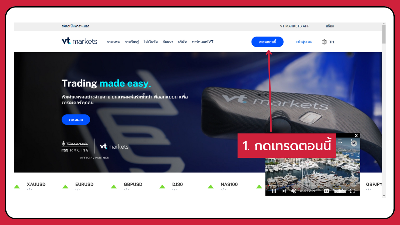 - เมื่อคุณเข้าเว็บไซต์ VT Markets แล้ว ให้มองหาปุ่มที่เขียนว่า “เทรดตอนนี้” ซึ่งอยู่ด้านขวาบนของหน้าเว็บ