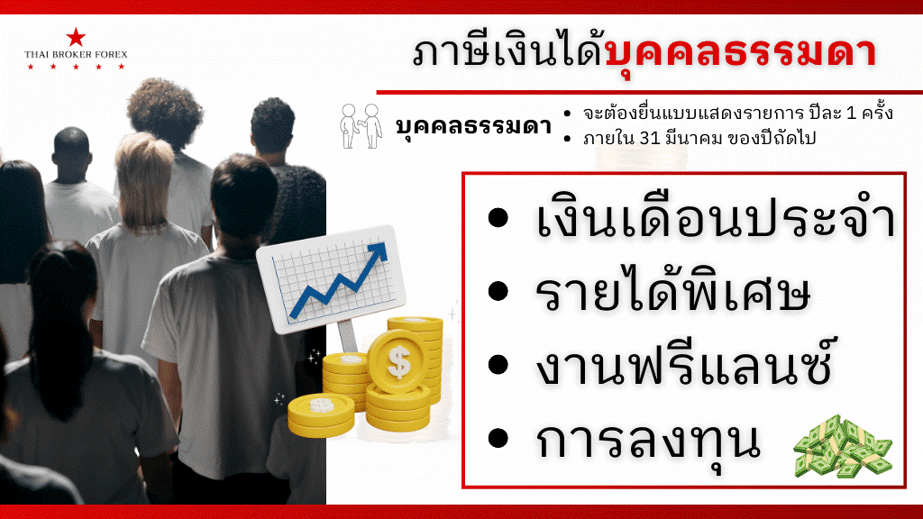 รูปที่ 1: อธิบายถึงบุคคลธรรมดาที่จะต้องเสียภาษี จากเงินรายได้ 4 แบบนี้ จะต้องยื่นปีละ 1 ครั้ง ภายในเดือนมีนาคมของปีถัดไป