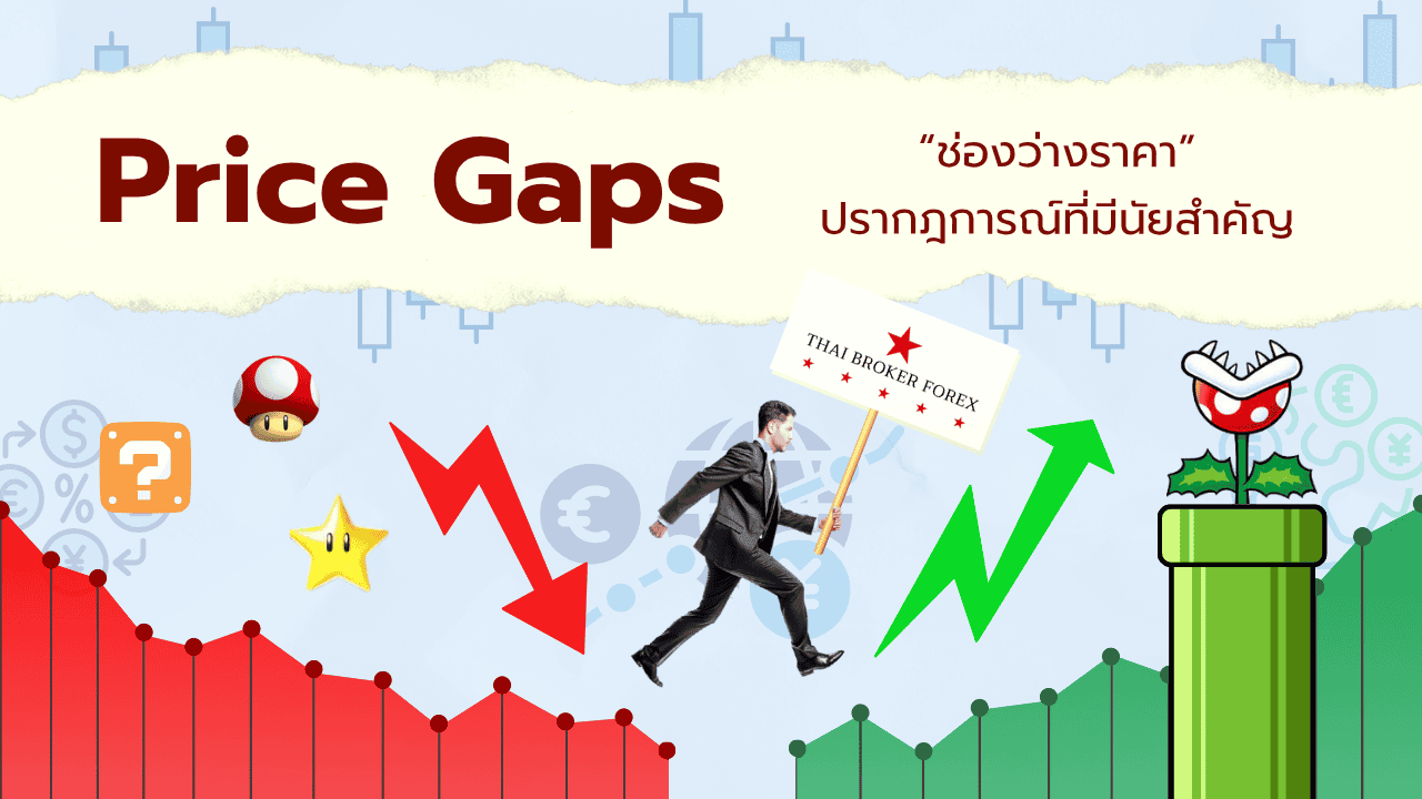 Price Gaps หรือ Market Gaps คือช่องว่างราคาที่เกิดขึ้นระหว่างราคาปิดของเทียนแท่งหนึ่งกับราคาเปิดของเทียนแท่งถัดไป ถ้ามองจาก กราฟราคา จะเห็นเป็นช่องว่าง (Gap) ที่ แท่งเทียน ไม่ต่อกัน Price Gaps เกิดขึ้นเพราะ การซื้อขาย ในช่วงเวลานั้นเป็นการเปิดออเดอร์เทไปทางใดทางหนึ่งเยอะๆ เช่น มีแต่ออเดอร์ Buy หรือออเดอร์ Sell ฝั่งเดียวอย่างกะทันหัน เป็นต้น