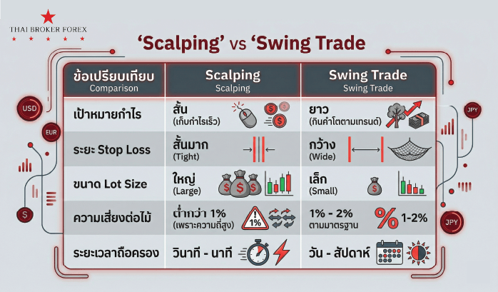 ตารางเปรียบเทียบ Scalping vs. Swing Trade