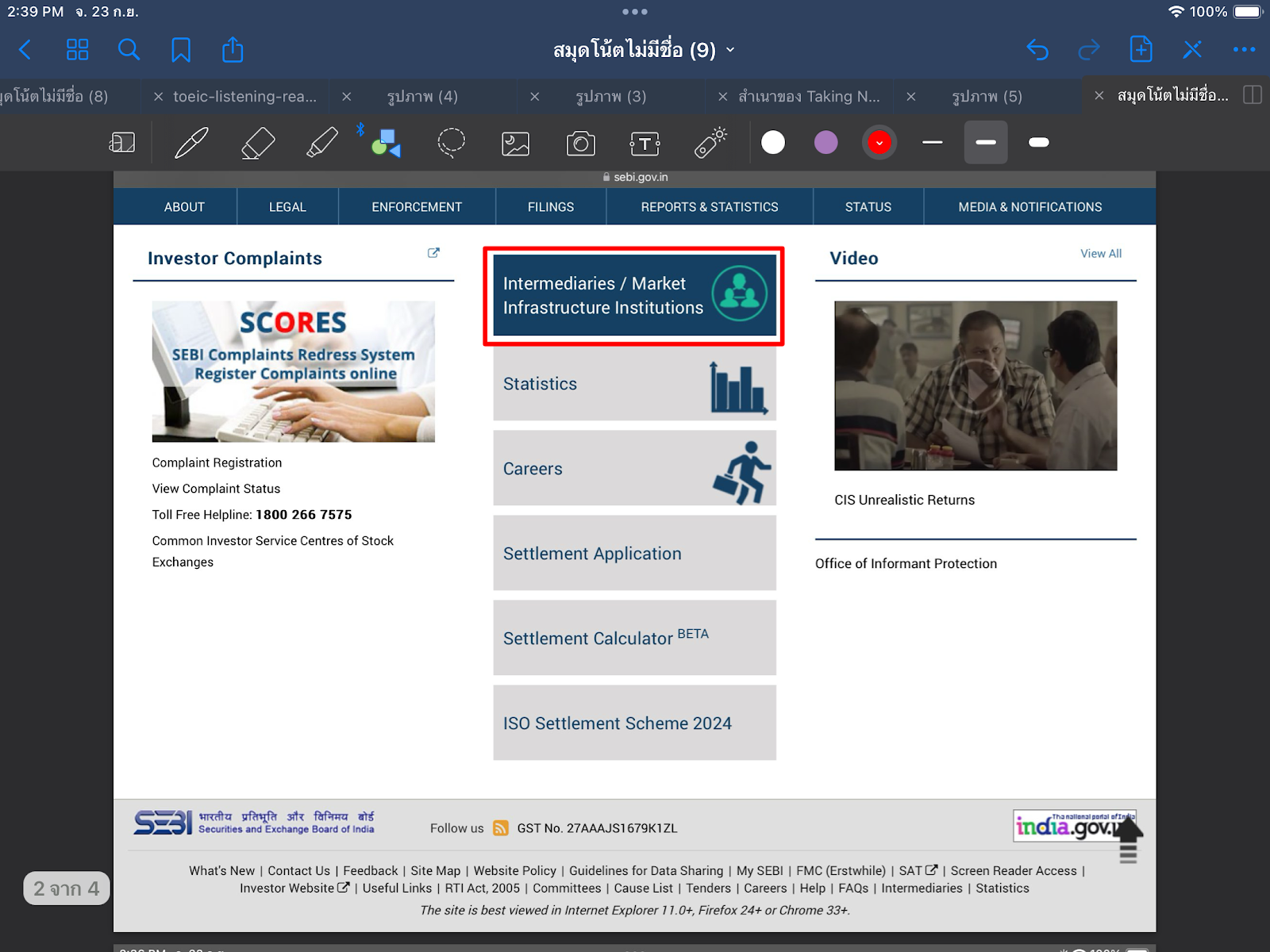 - เลื่อนลงไปที่เมนู “Intermediaries / Market Infrastructure Institutions” บนหน้าแรก