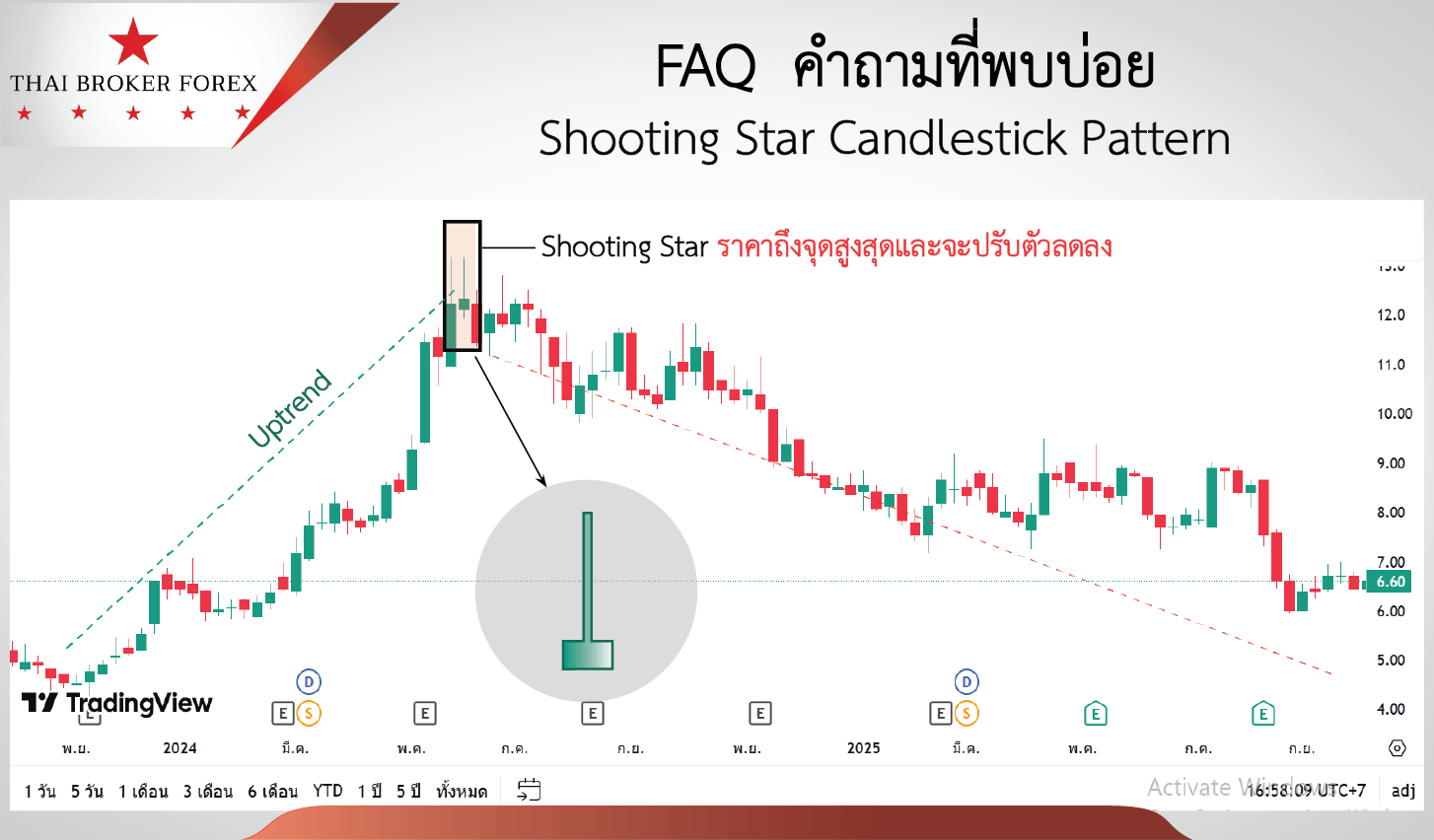 รูปแบบ Shooting Star เป็นสัญญาณ Bearish (รูปแบบขาลง) เพียงอย่างเดียวเท่านั้น