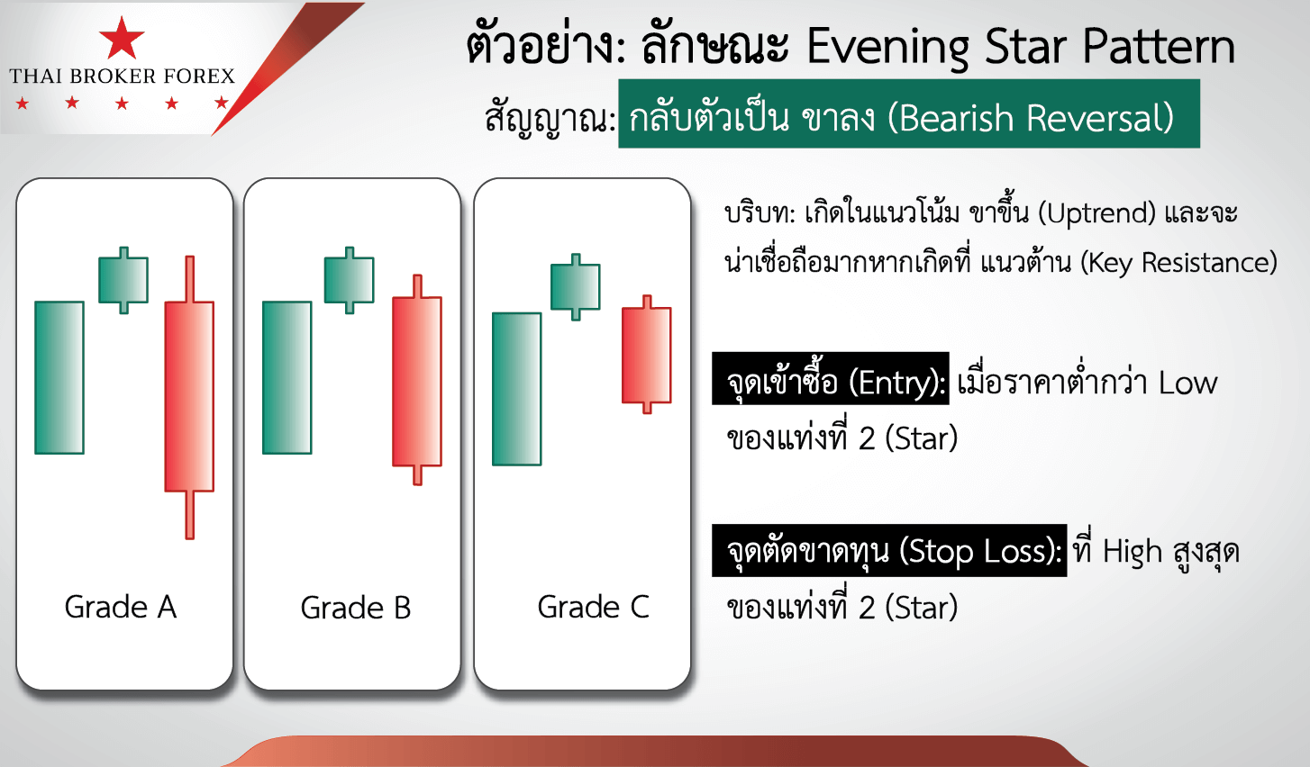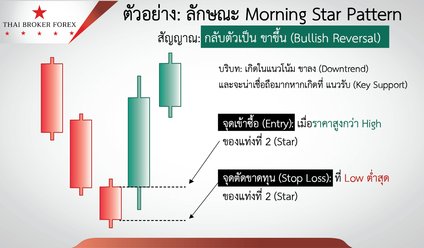 - ประกอบด้วย: แท่งเขียวใหญ่, ตามด้วยแท่ง Star เล็กๆ ที่ Gap สูงขึ้น, และยืนยันด้วยแท่งแดงใหญ่