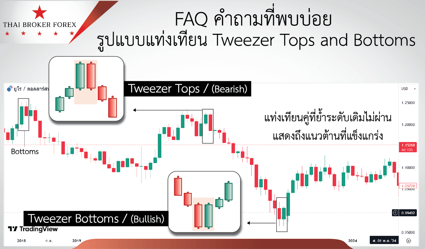 เรื่อง Tweezer tops and bottoms Candlestick [How to use]