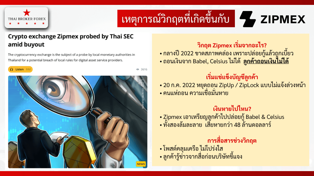 เหตุการณ์วิกฤตที่เกิดขึ้นกับ zipmex