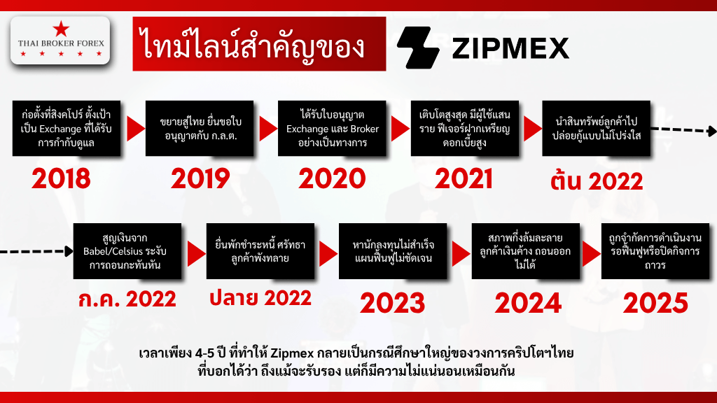 ภาพสรุปเหตุการณ์สำคัญของ Zipmex ตั้งแต่ก่อตั้ง ไปจนถึงเข้าไทย ผ่านจุดรุ่งเรืองแบบสุดขีด ก่อนกลายเป็นแพลตฟอร์มที่ถูกปลดใบอนุญาตจาก กลต.